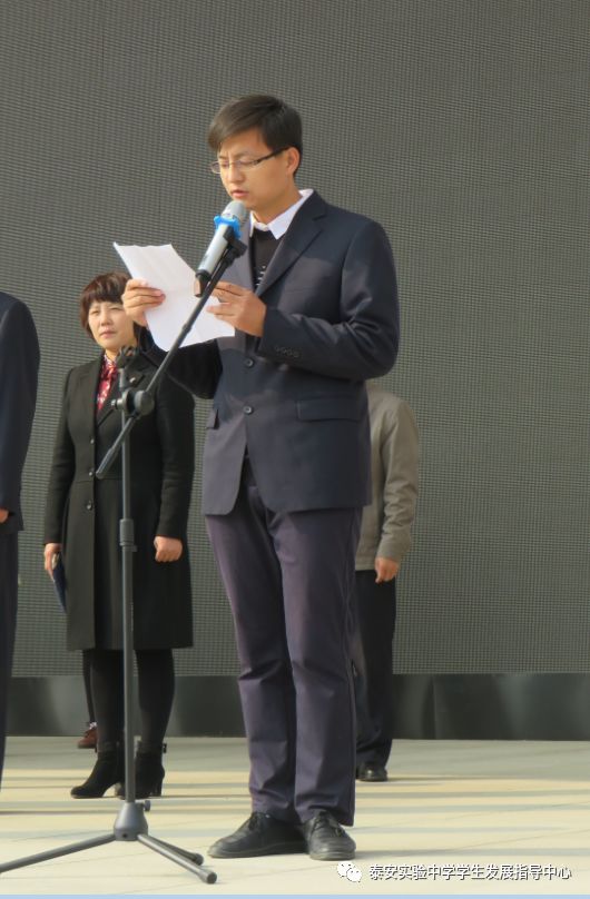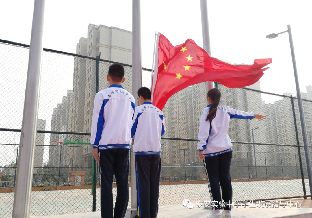 10月22日,周一。课间操期间,泰安实验中学全体师生在操场隆重集会,举行每周一次的升旗仪式活动。活动共分为4个环节:升国旗、唱国歌环节;学生之国旗下演讲环节;老师之我想对你说环节;周点评环节。