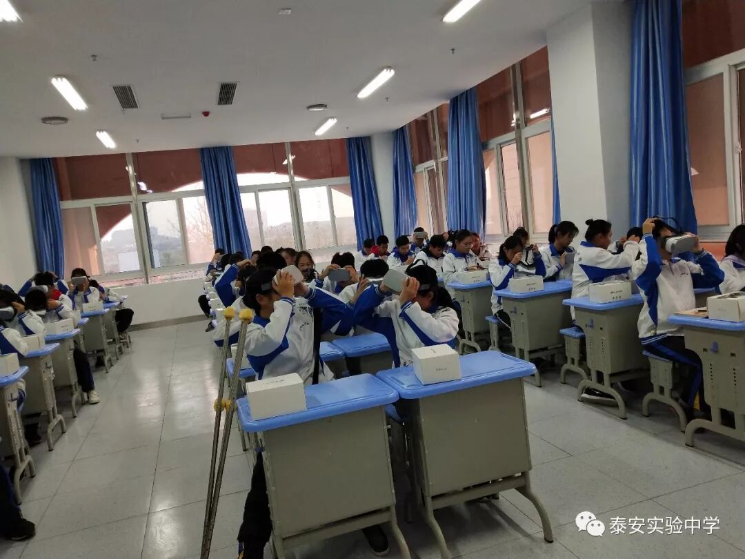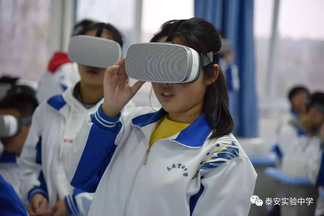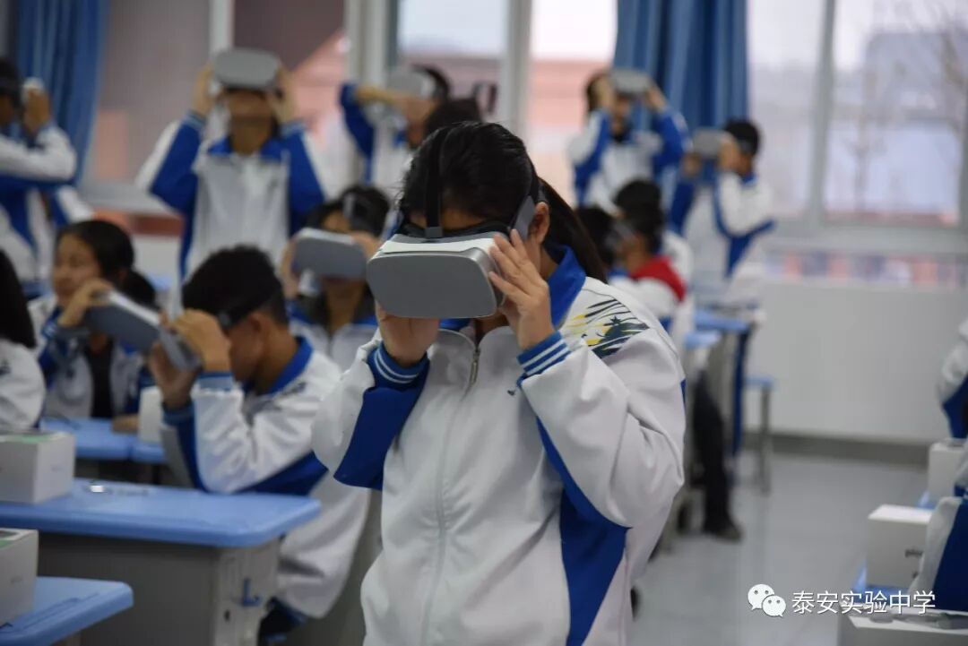 10月24日,泰安实验中学高一7班的学生们戴上VR眼镜,亲身体验到VR这一前沿科技带来的震撼与欢乐。让孩子们深刻感受到VR科技给教育带来的便捷与实用。