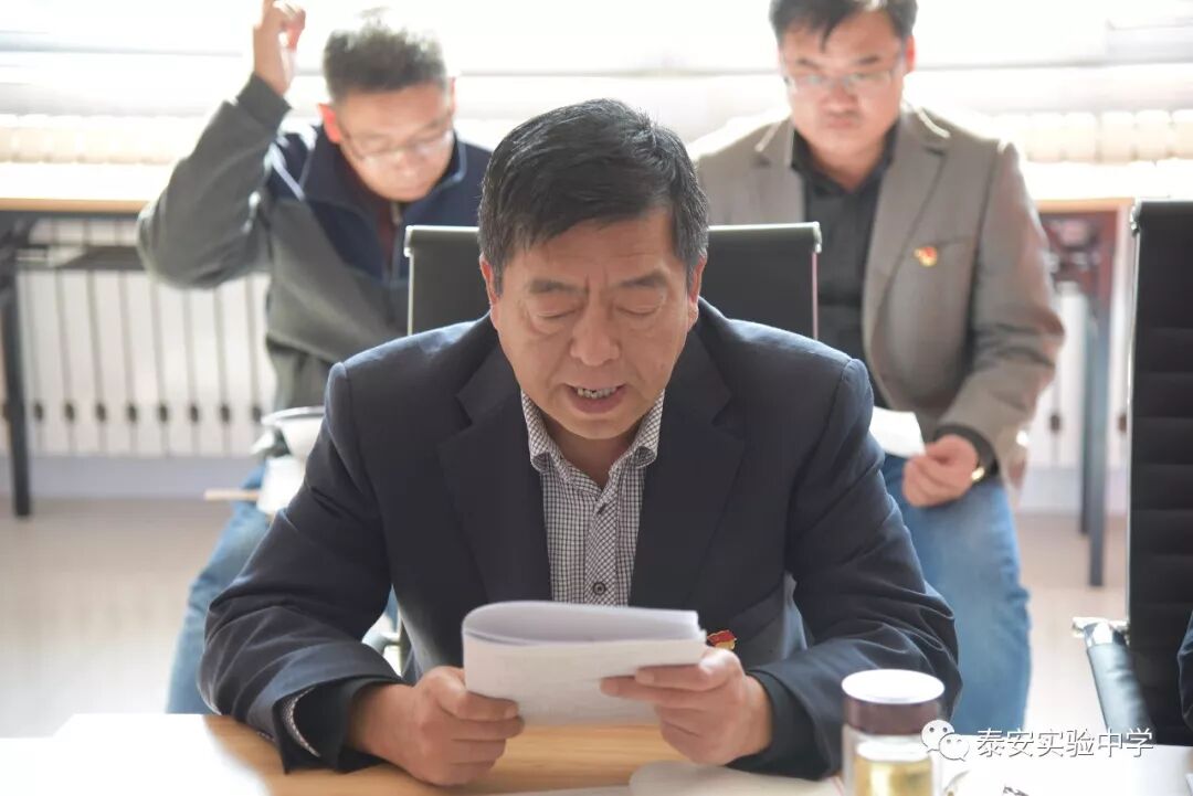 支部宣传委员陈佳敏宣读了泰安市教育局党委《关于成立泰安实验中学临时党支部的决定》。