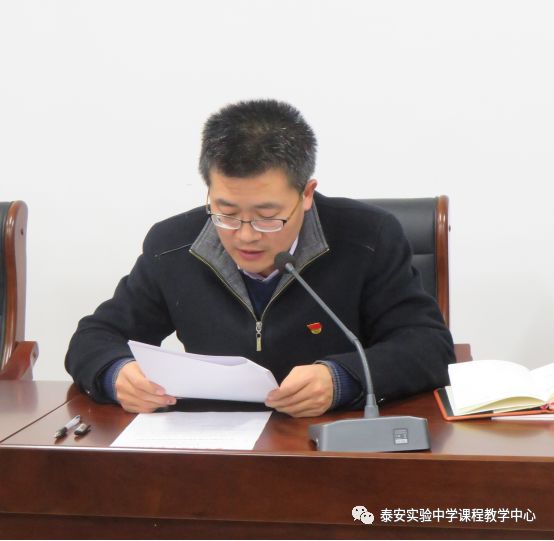 会议由泰安实验中学王冲校长主持,王冲校长和陈佳敏副校长依据平时教学和期中成绩进行了细致地分析和总结,在肯定教学方面取得的成绩的同时,客观地指出了教学中存在的问题,并提出了切实可行的教学策略。