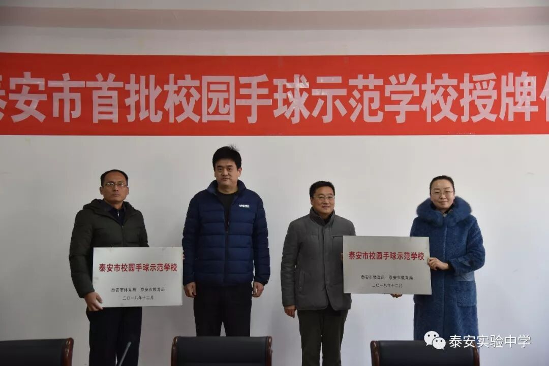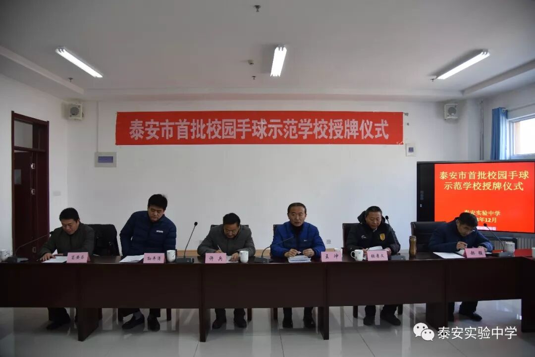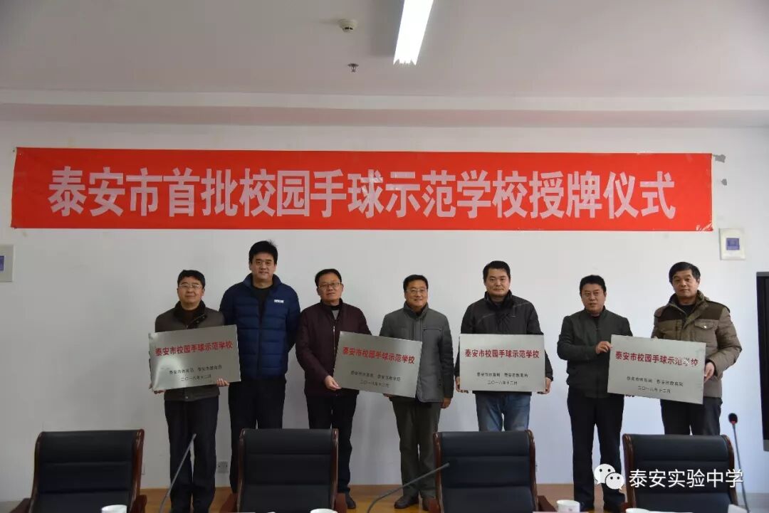 13 日上午,泰安市首批校园手球示范学校授牌仪式在泰安实验中学举行,全市 7 所学校被命名为首批“泰安市校园手球示范学校”。泰安实验中学是唯一一所获得授牌的高中学校。