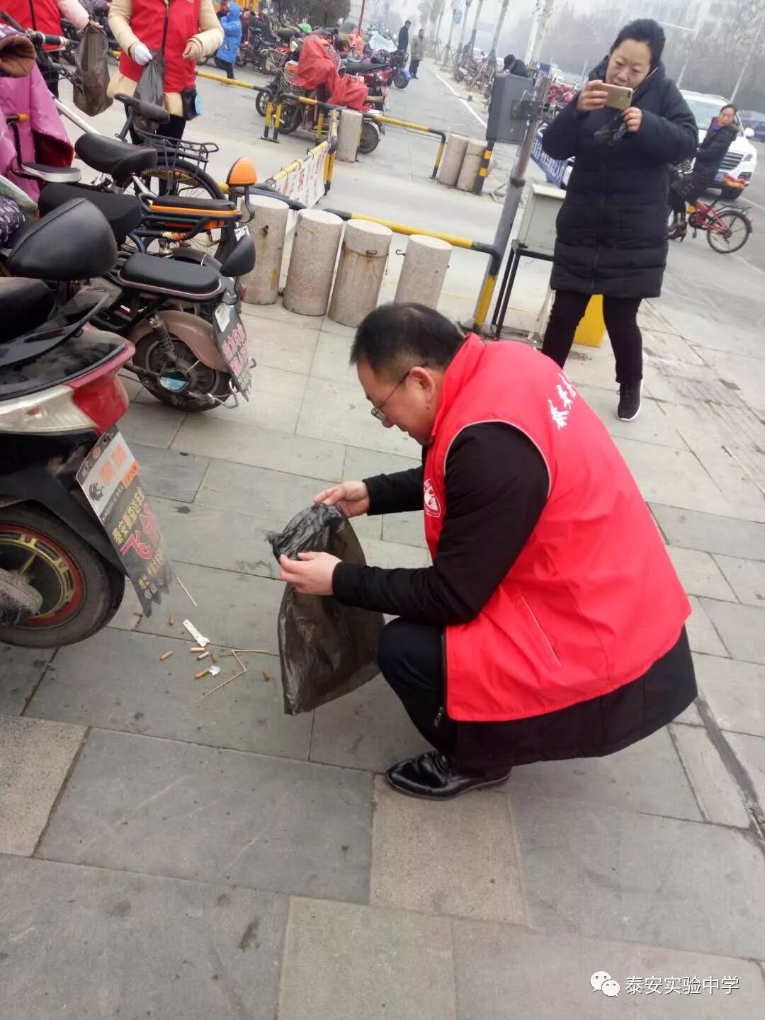 为净化美化泰城,塑造城市文明形象,根据市教育局机关党委要求,泰安实验中学积极开展“文明劝导、捡拾烟头垃圾”志愿服务活动。
