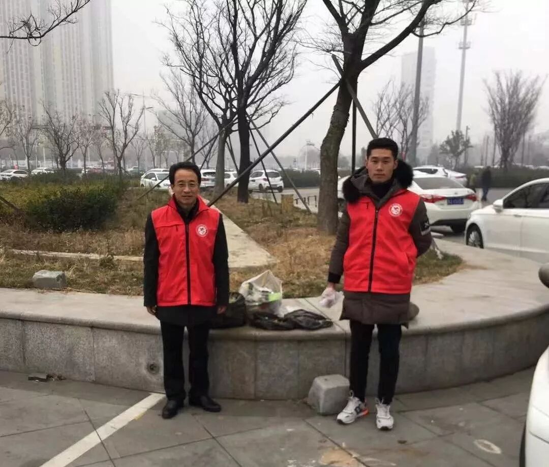 志愿者们不惧严寒,不怕脏累,在广场金街、广场周围花坛、人行道沿路捡拾烟头、垃圾。