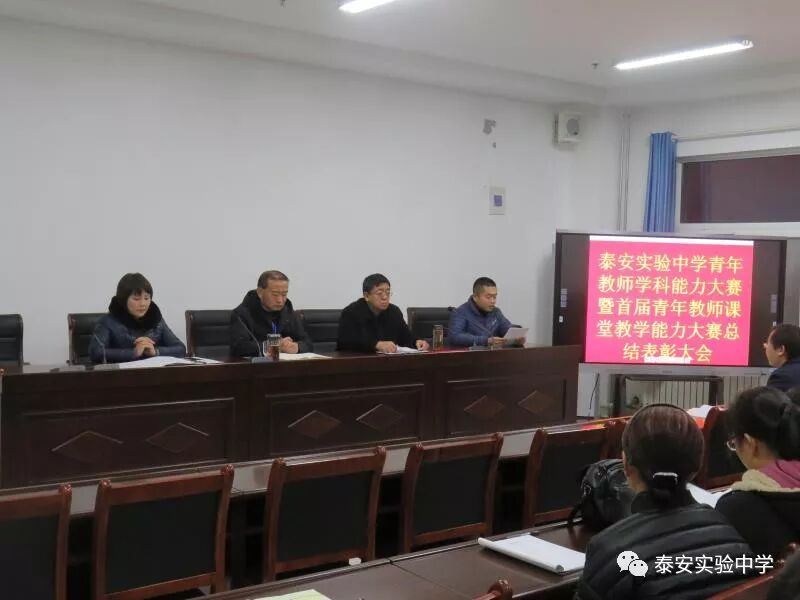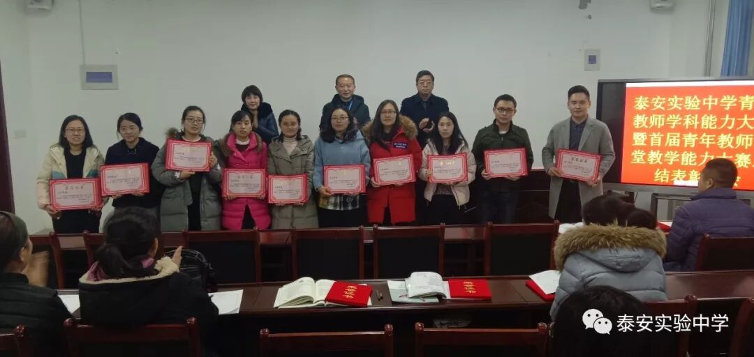 12月17日下午5点,泰安实验中学举行了首届青年教师学科能力大赛暨青年教师课堂教学大赛总结表彰会。校长王冲,副校长姜士勇、陈佳敏和青蓝工程的全体教师参加大会。