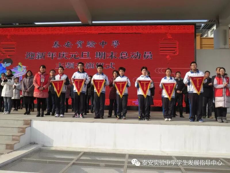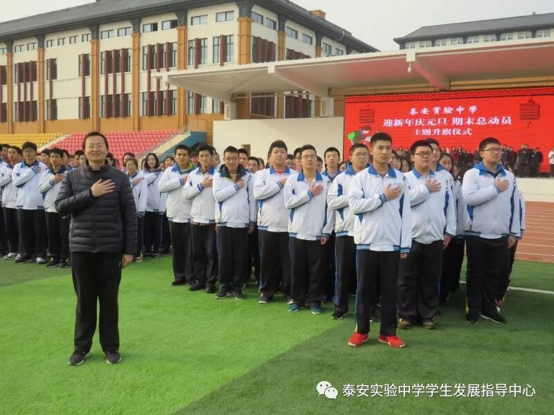 12月24日,2018年最后一个星期一。泰安实验中学全体师生及驻校家长在学校操场隆重集会,举行泰安实验中学“迎新年庆元旦 期末总动员”主题升旗仪式。