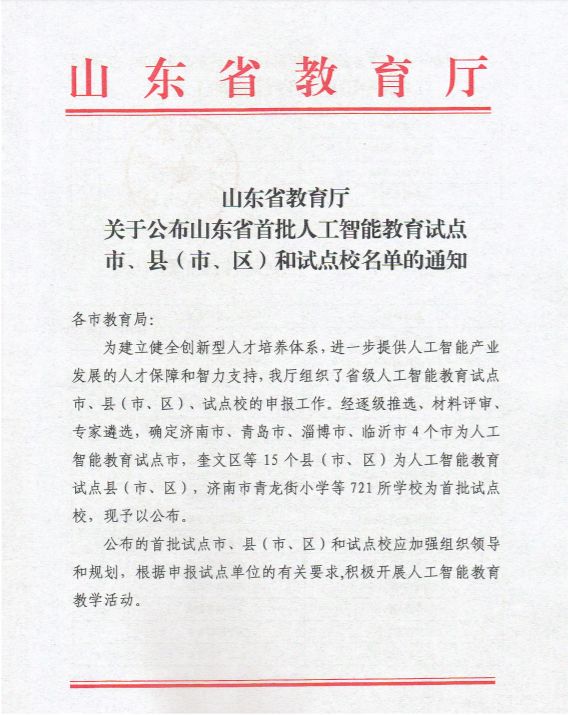 【喜报】泰安实验中学入选山东省首批人工智能试点学校