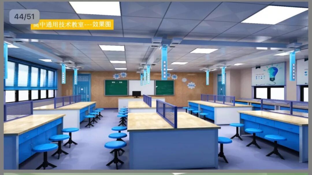教室内配有多功能课桌椅和学生书柜,现代化智慧黑板和电子班牌,班班实现物联互通。