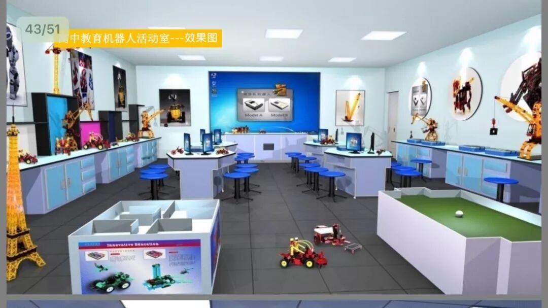 泰安实验中学总建筑面积99068.6平方米,校园西侧是三幢连体教学楼,每个年级相对独立,能容纳60个班规模。连廊内配有国学室、书法室、陶艺室等,内设有四个音乐教室,四个美术教室,四个通用技术实验室,理化生吊装实验室各六口,数字探究实验室和学科教室各一口。