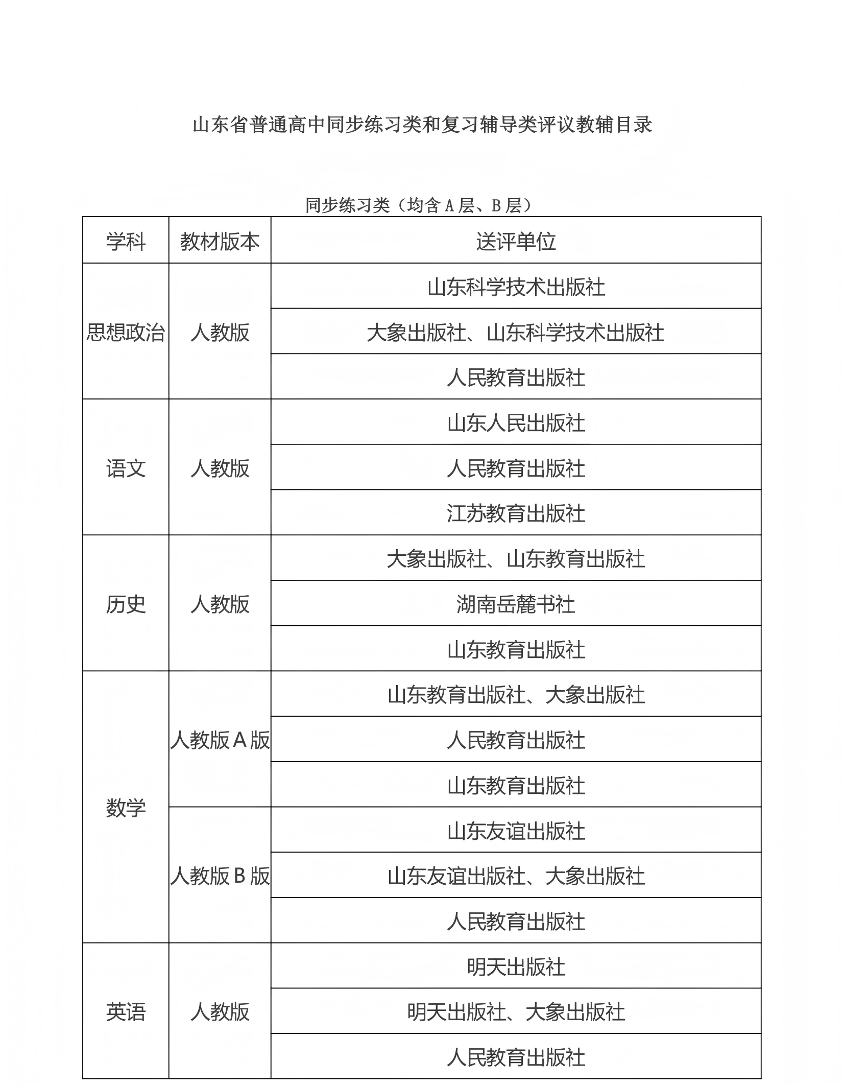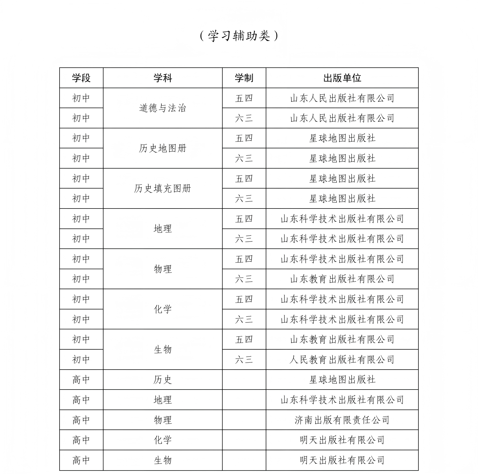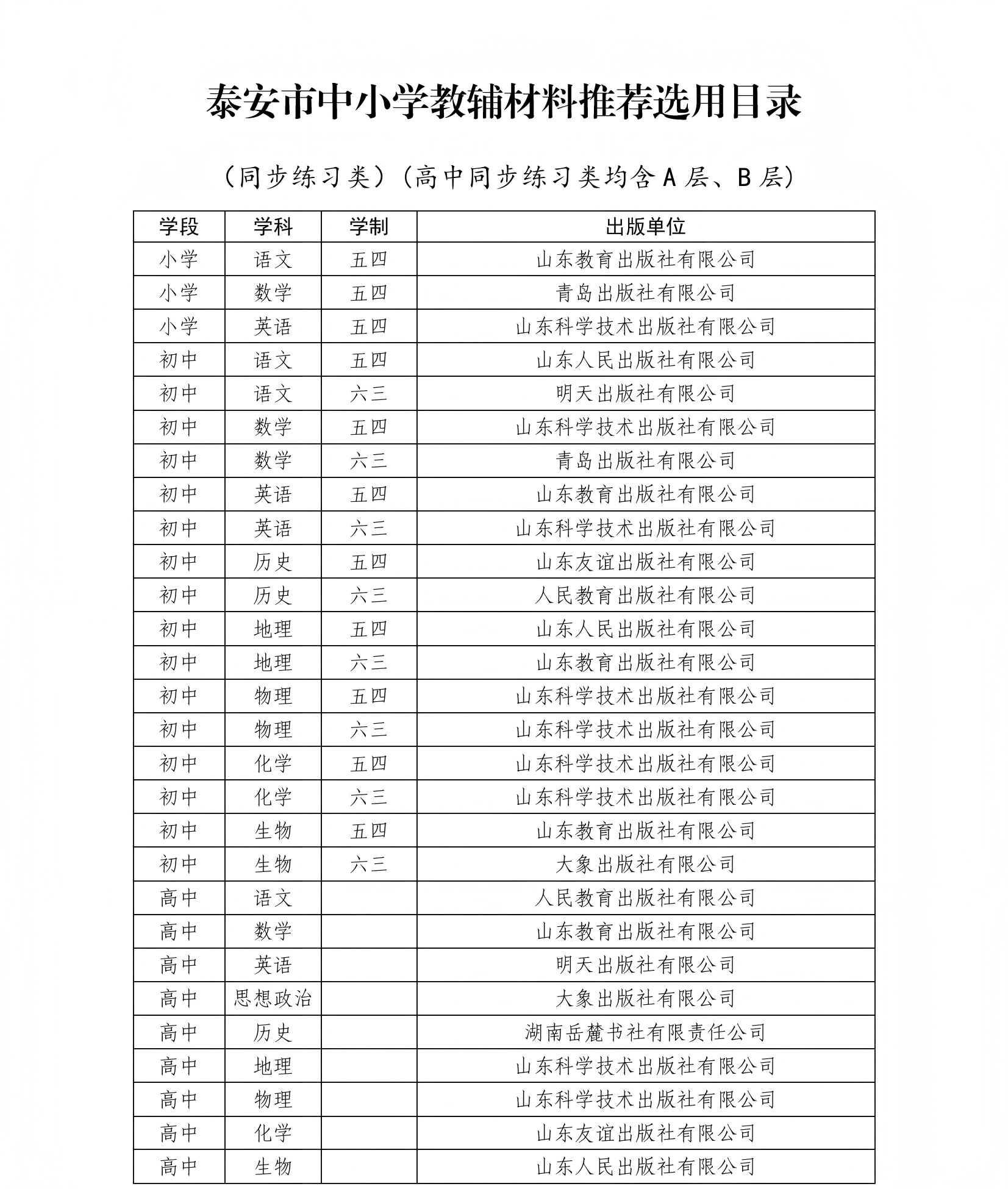 山东省中小学教辅材料评议目录及泰安市中小学教辅材料推荐选用目录