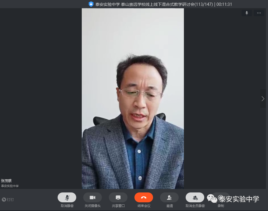为反思总结十周以来线上教学工作,进一步提高课堂教学质量,在实践中进行“问题即课题,过程即研究,解决即成果”教学行动研究,4月21日,泰安实验中学、泰山崇远学校召开了主题为“总结、反思、学习、提高”的线上线下混合式教学研讨会。校长王冲,副校长姜士勇、陈佳敏、张茂银,泰山崇远学校金彬校长出席会议。